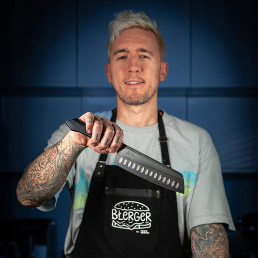 Zmaksymalizuj wydajność cięcia, krojenia, siekania używając noża Adiego Foxxa sygnowanego jego własnoręcznym podpisem i mottem MAKE GOTOWANIE GREAT AGAIN